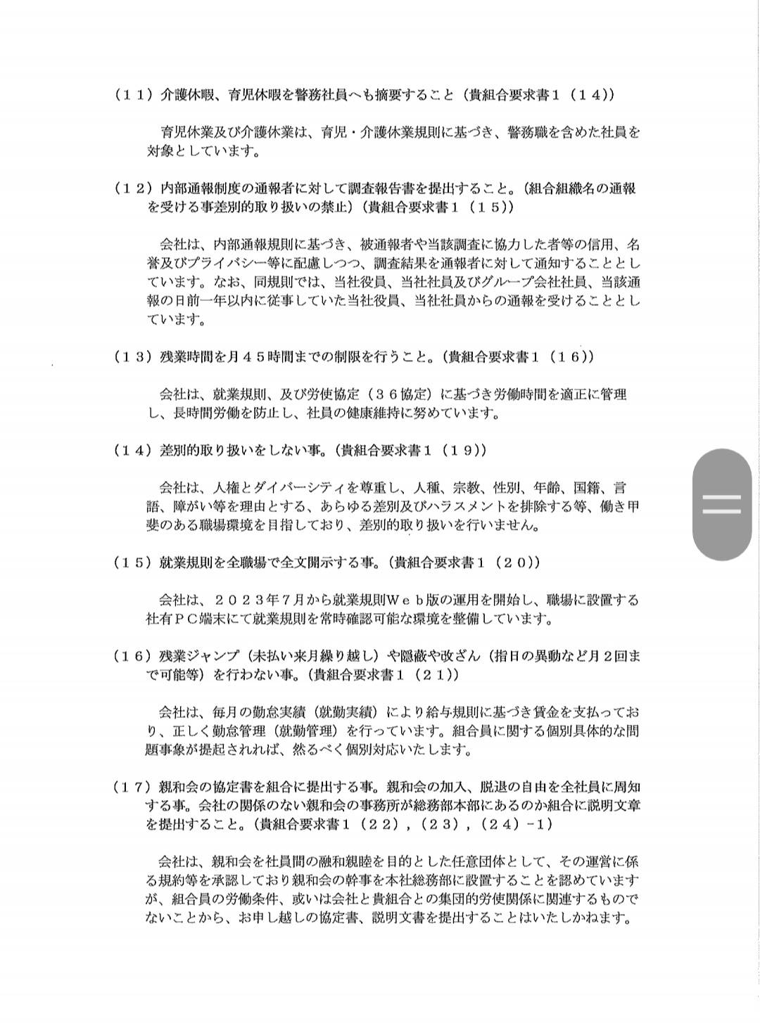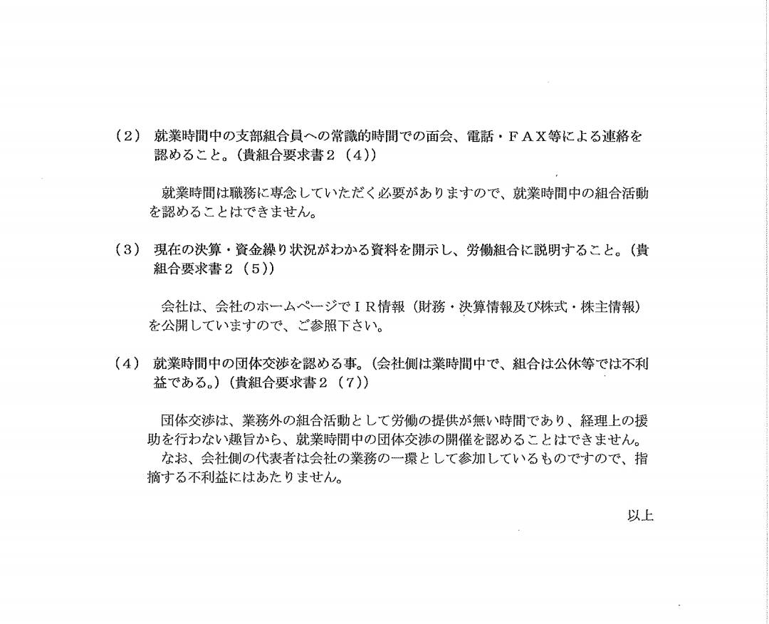 ストライキ通告について本社より回答がありました。去年のと是非見比べてください。